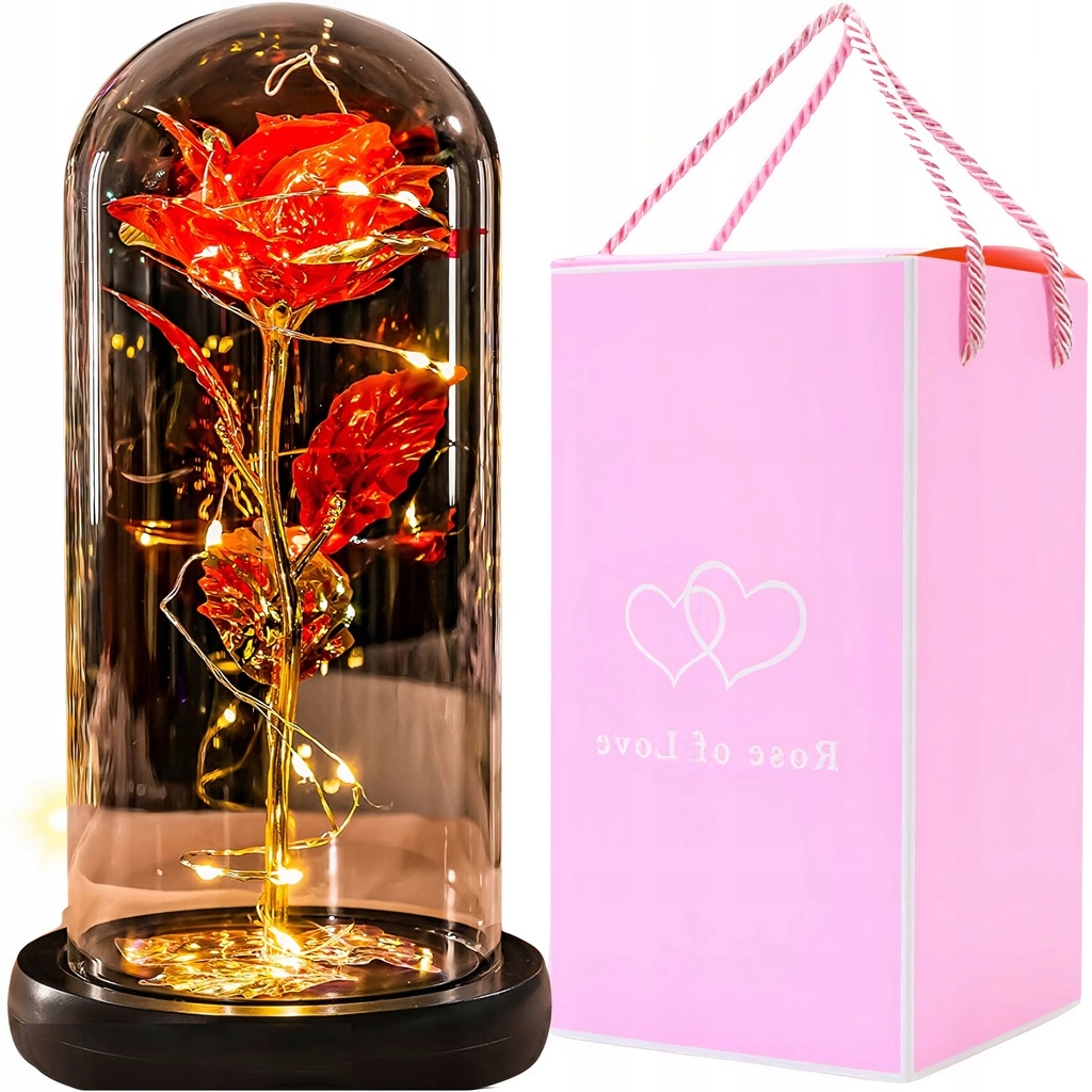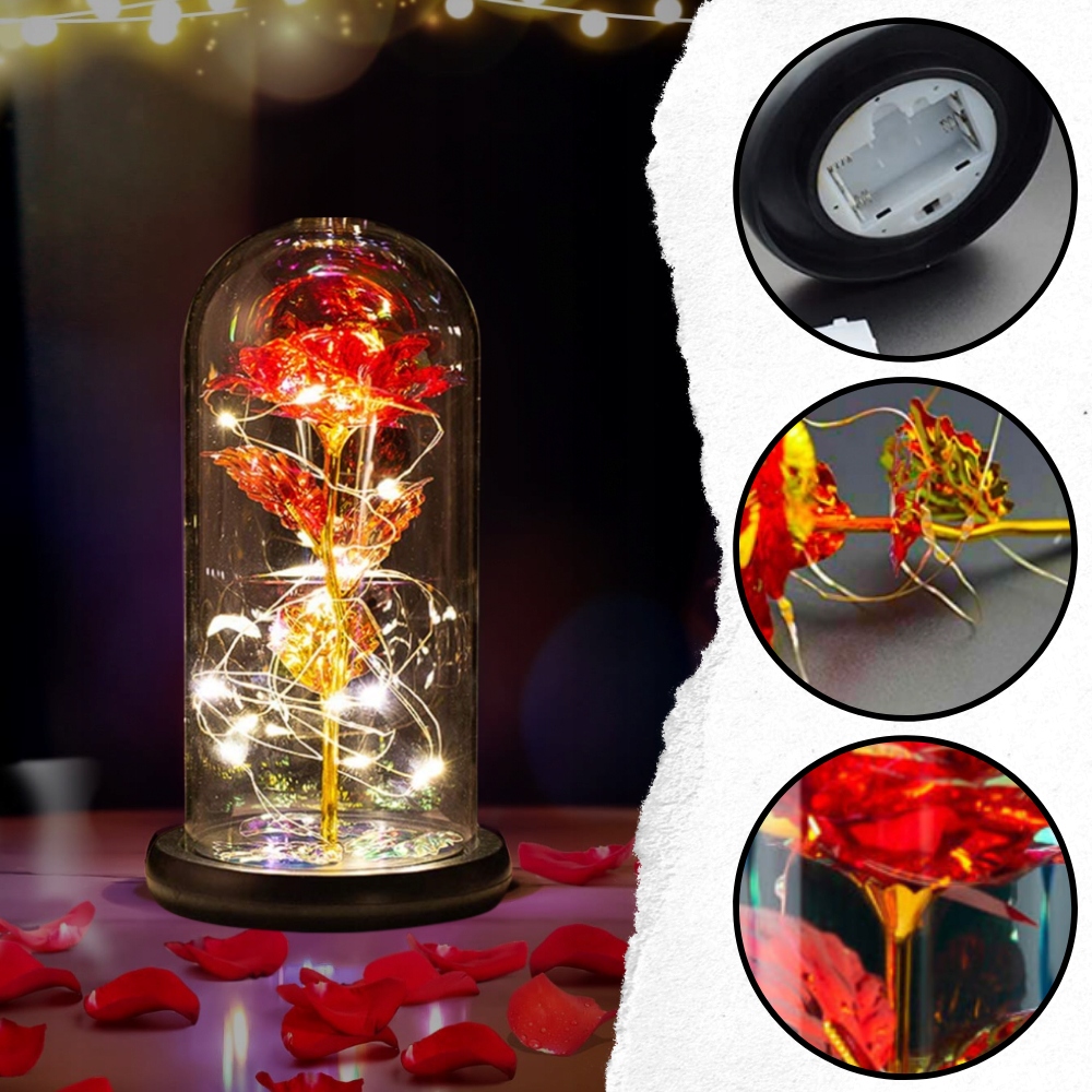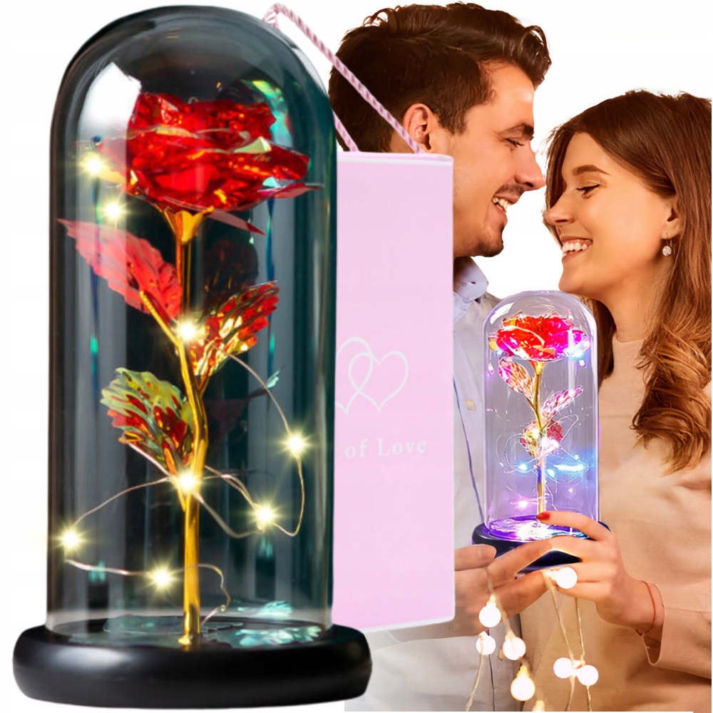 Wieczna czerwona róża w szkle świecąca led