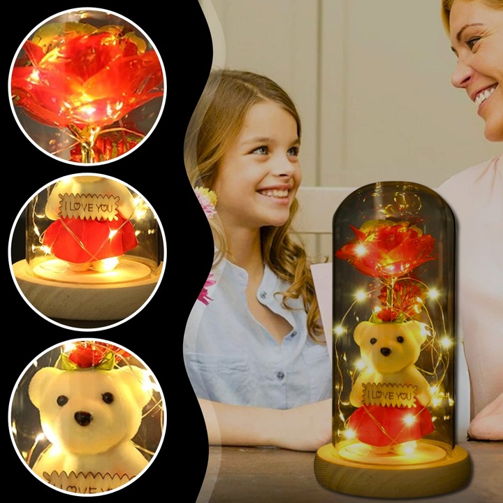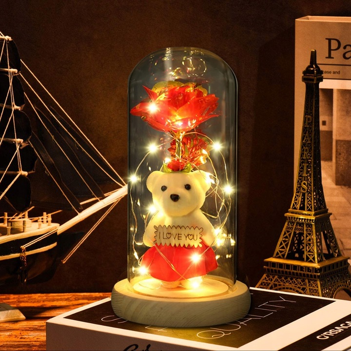 ✅ Sztuczne płatki róż wyglądają na teksturowane i równomiernie zabarwione, okrągła podstawa jest stabilna, a przezroczysta szklana kopuła może zapobiegać gromadzeniu się kurzu przez kwiat.
