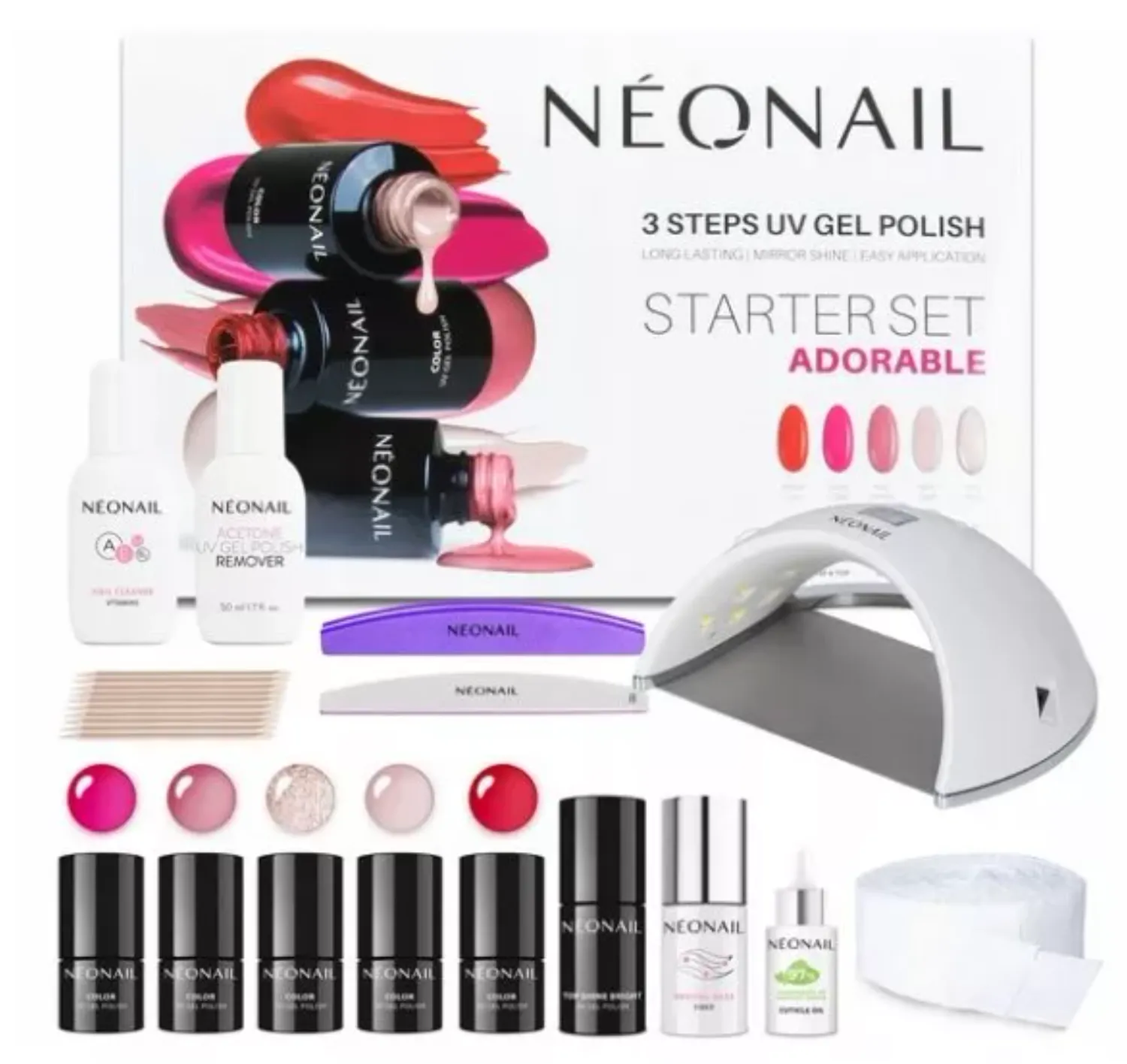 Zestaw do manicure hybrydowego ADORABLE SET od firmy NEONAIL to rozbudowany pakiet startowy. Jest idealny dla osób, które chcą nie tylko malować paznokcie, ale również eksperymentować z ich kolorami oraz długością. Dzięki niemu będziesz miała szeroki wachlarz możliwości.